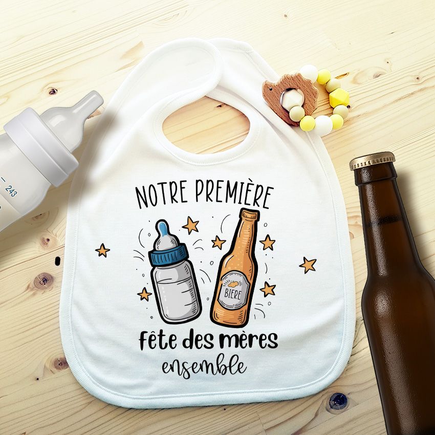Célébrez votre toute première fête des mères avec une touche d'humour et beaucoup de tendresse ! Ce bavoir original met en scène un duo irrésistible : le biberon de bébé et la bouteille de bière de maman. Un clin d’œil complice pour immortaliser ce moment unique !