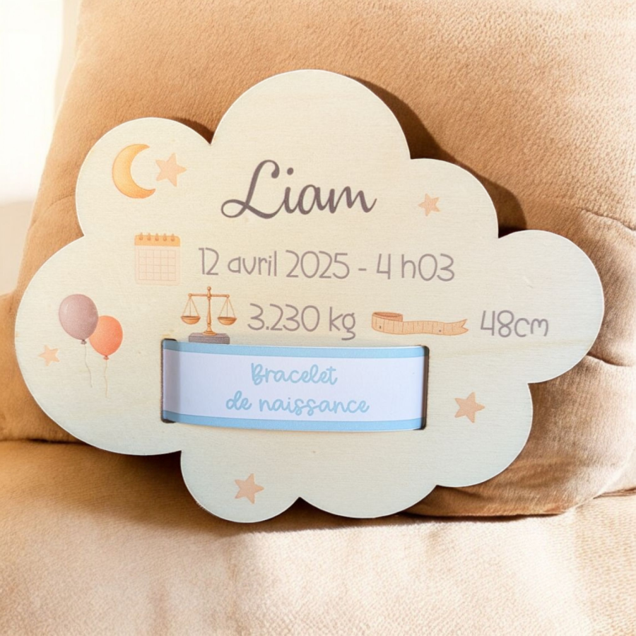 Plaque nuage en bois bois imprimée Souvenir de naissance bracelet