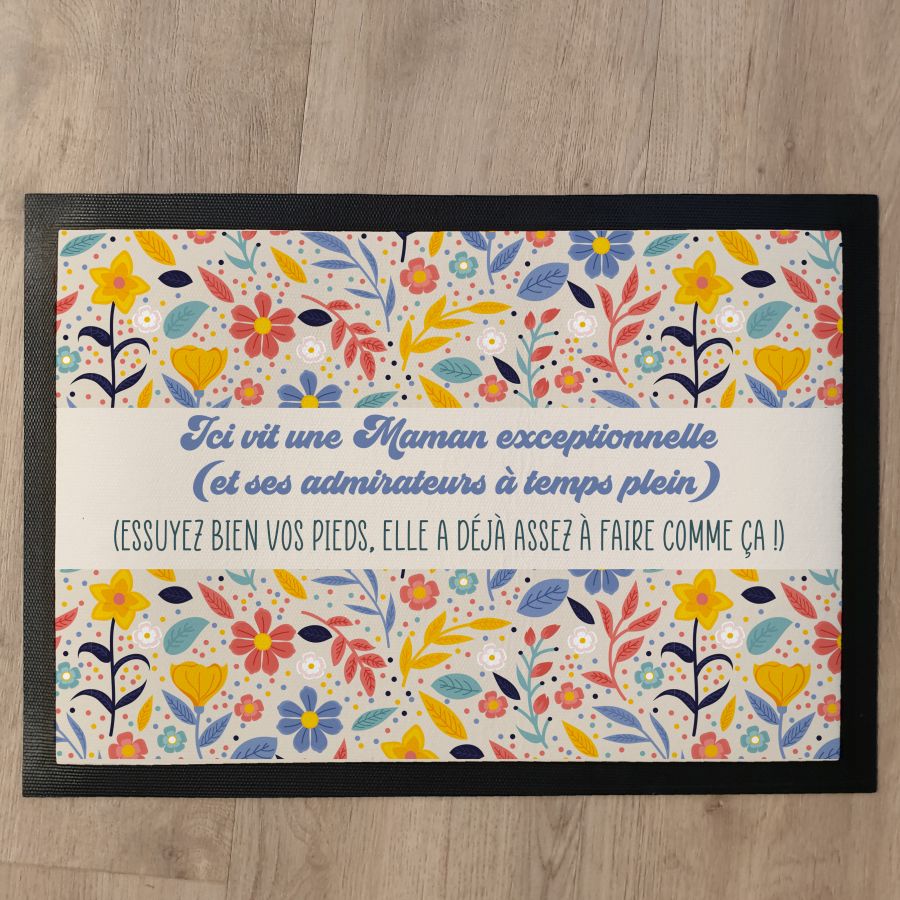 Tapis ou paillasson Fête des Mères floral – Ici vit une Maman exceptionnelle
