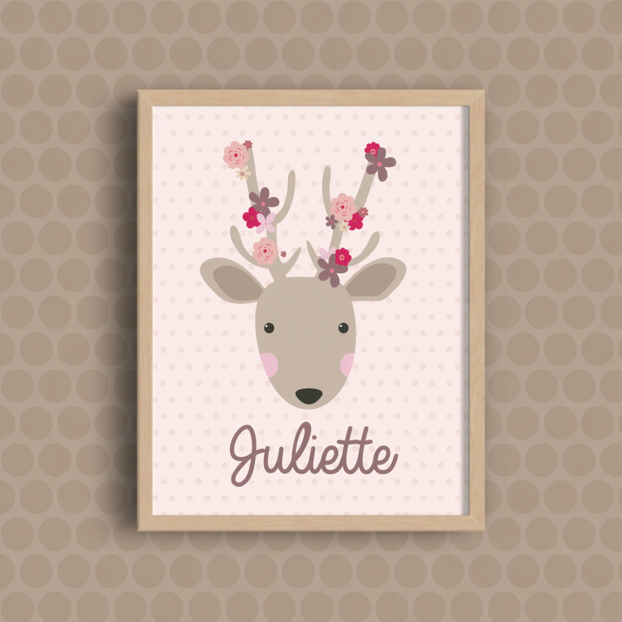 Affiche Cerf personnalisée pour chambre d’enfant avec prénom