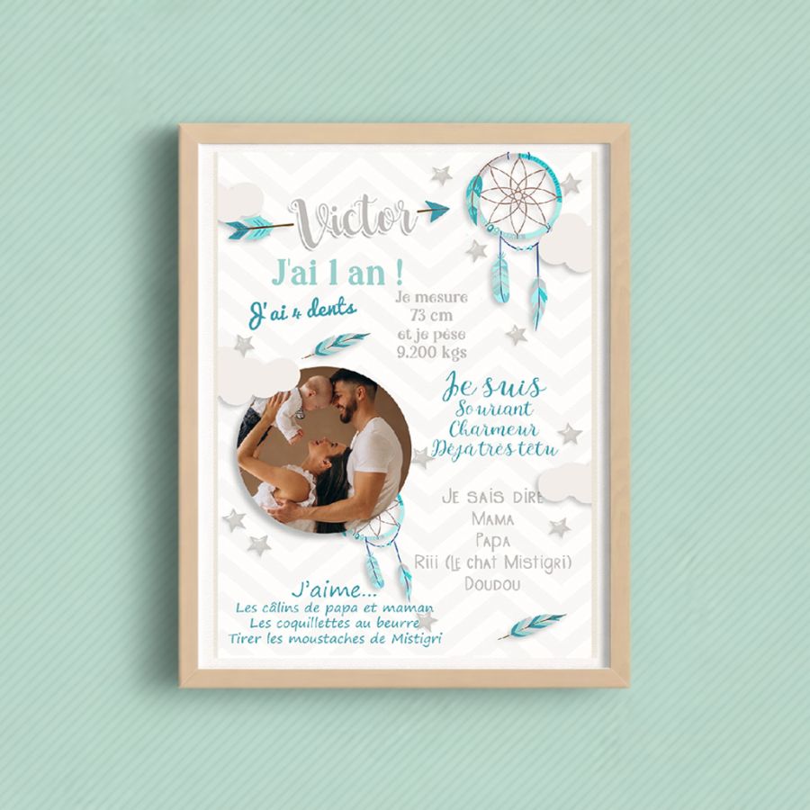 Affiche souvenir 1er anniversaire attrape rêves personnalisée – univers bohème et poétique