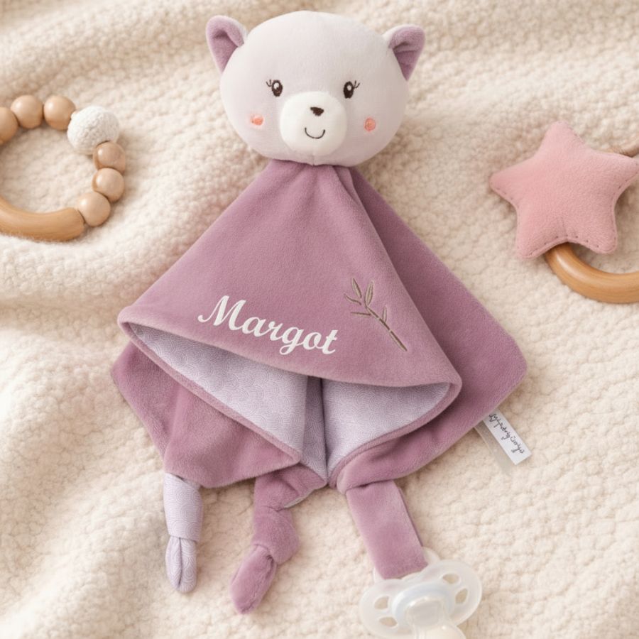 Ce doudou personnalisé est un compagnon doux et rassurant pour bébé.
