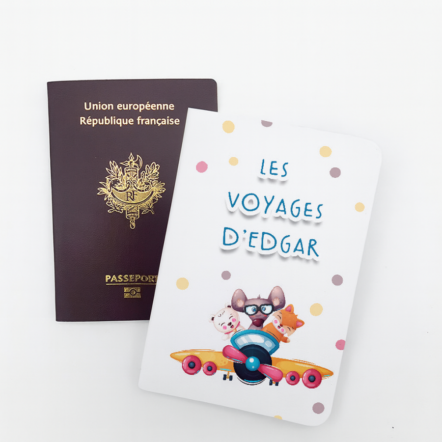 Protégez votre passeport ou celui de votre enfant avec cette housse rigide pour passeport, illustré et personnalisé avec le petit texte de votre choix.