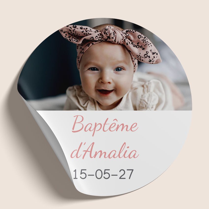 Apportez une touche personnelle et pleine d’émotion à votre événement avec notre sticker rond personnalisé avec photo pour baptême. Idéal pour sublimer vos faire-part, enveloppes, boîtes à dragées ou cadeaux invités, ce sticker photo transforme chaque détail en souvenir unique.