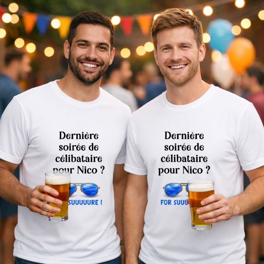 Parfait pour mettre le futur marié au centre de l’attention, ce t-shirt apporte une touche d’humour et de style à votre soirée entre amis.